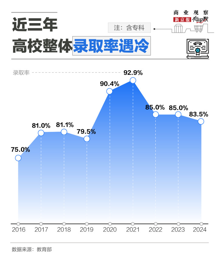 逆势增长源于高考竞争激烈的实质压力并未缓解。2020年至2024年,我国本科录取率从41.4%降至33.5%,地区差异进一步加剧了竞争焦虑。根据教育部最新数据预测,2025年本科录取率预计仅为37.6%,67%以上的考生将无缘本科。